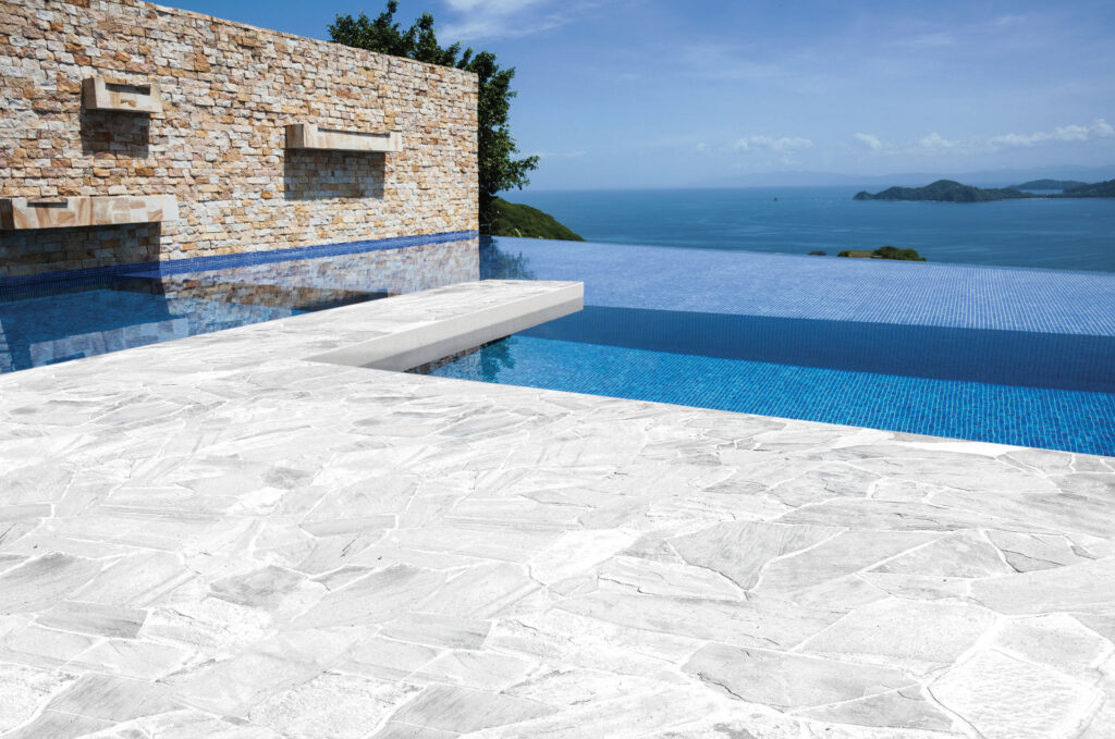 Talna obloga iz naravnega kamna Santos White je na voljo v različnih formatih in ima rahle odtenke, ki dodajo pridih elegance vsakemu prostoru. Dimenzije in površine z naravnim razcepom ustvarjajo nepravilen učinek, zaradi česar je vsak pod edinstven.