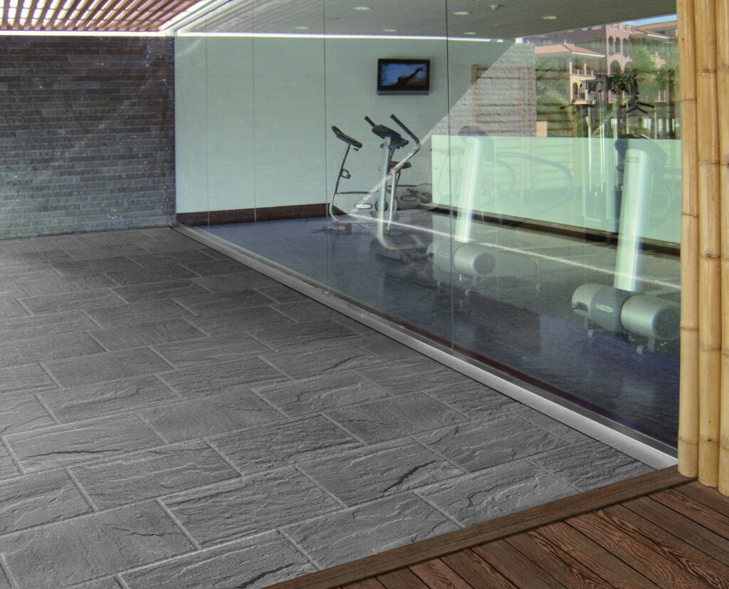 Priporočamo pripravo 8 mm širokega fuga in polaganje z debelim lepilom, še posebej, če se kombinirajo različni formati.